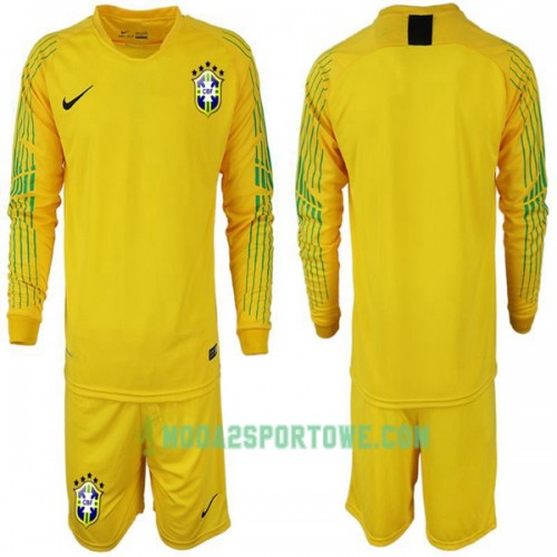 Koszulka Brazylia Dziecięcy Mistrzostwa Świata 2018 Domowe Stroje Piłkarskie Długi Rękaw