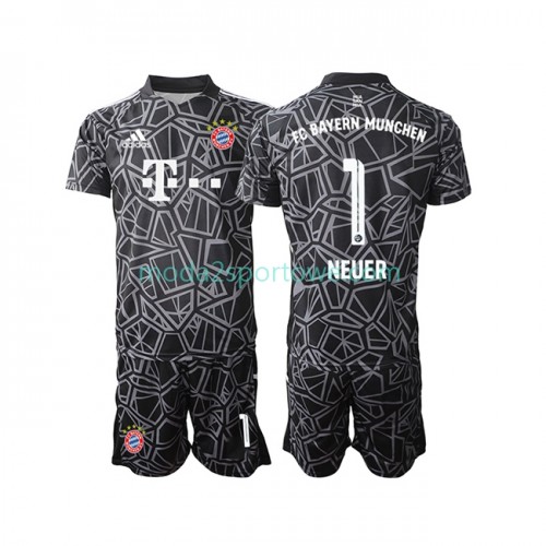 Koszulka Bayern Monachium Manuel Neuer 1 Bramkarska Dziecięcy Wyjazdowe Stroje Piłkarskie 2022/23 Krótki Rękaw