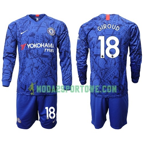 Koszulka Chelsea Giroud 18 Dziecięcy Domowe Stroje Piłkarskie 2019/20 Długi Rękaw