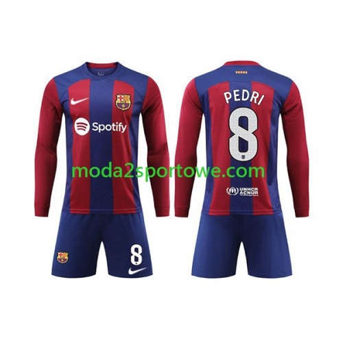 Koszulka FC Barcelona Pedri 8 Dziecięcy Domowe Stroje Piłkarskie 2023/24 Długi Rękaw