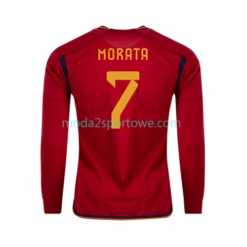 Koszulka Hiszpania MORATA 7 Domowe Stroje Piłkarskie World Cup 2022 Długi Rękaw