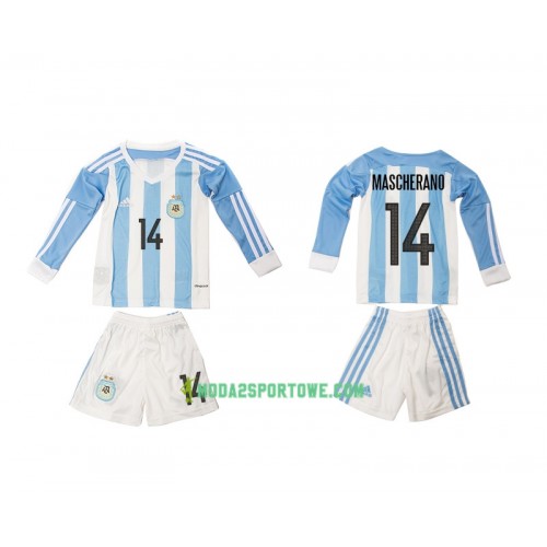 Koszulka Argentyna Mascherano 14 Dziecięcy Domowe Stroje Piłkarskie 2016 Długi Rękaw