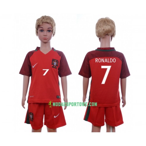 Koszulka Portugalia Cristiano Ronaldo 7 Dziecięcy Domowe Stroje Piłkarskie Euro 2016 Krótki Rękaw