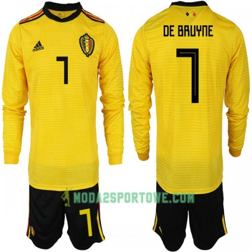 Koszulka Belgia DE BRUYNE 7 Dziecięcy Mistrzostwa Świata 2018 Wyjazdowe Stroje Piłkarskie Długi Rękaw