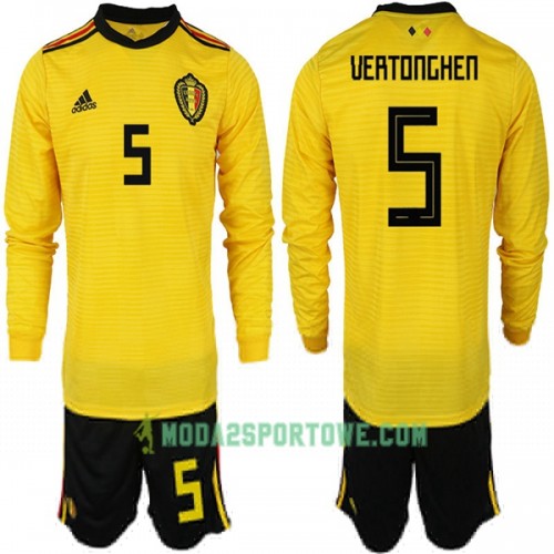 Koszulka Belgia VERTONGHEN 5 Dziecięcy Mistrzostwa Świata 2018 Wyjazdowe Stroje Piłkarskie Długi Rękaw