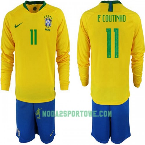 Koszulka Brazylia P. Coutinho 11 Dziecięcy Mistrzostwa Świata 2018 Domowe Stroje Piłkarskie Długi Rękaw