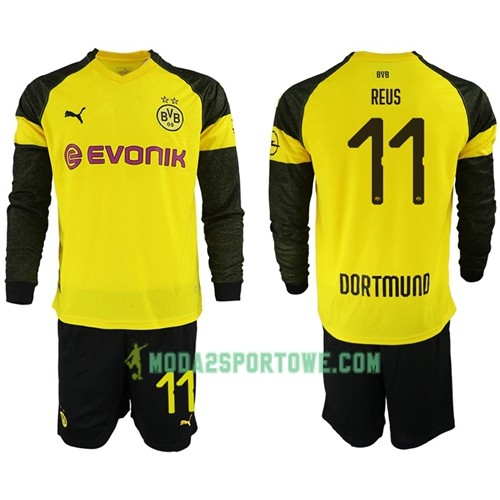 Koszulka Borussia Dortmund Reus 11 Dziecięcy Domowe Stroje Piłkarskie 2018/19 Długi Rękaw