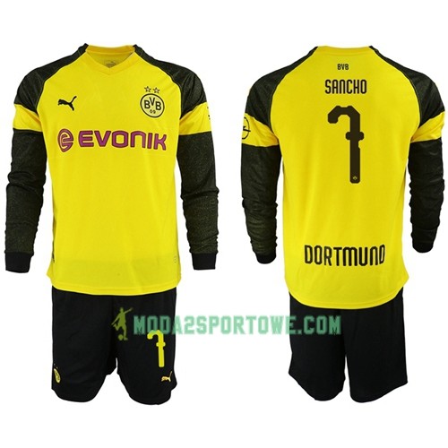 Koszulka Borussia Dortmund Sancho 7 Dziecięcy Domowe Stroje Piłkarskie 2018/19 Długi Rękaw