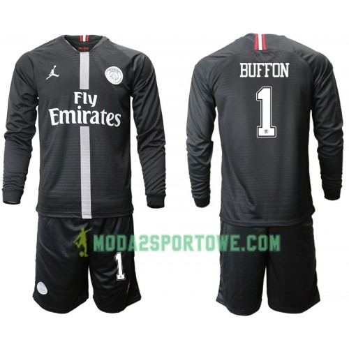 Koszulka Paris Saint-Germain BUFFON 1 Jodan Czarny Dziecięcy Trzeci Stroje Piłkarskie 2018/19 Długi Rękaw