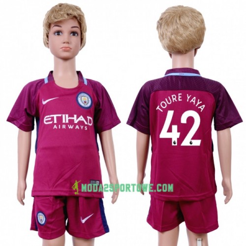 Koszulka Manchester City Yaya Toure 42 Dziecięcy Wyjazdowe Stroje Piłkarskie 2017/18 Krótki Rękaw