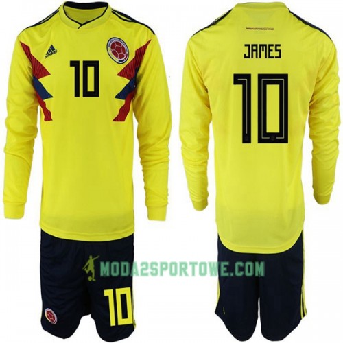 Koszulka Kolumbia James 10 Dziecięcy Mistrzostwa Świata 2018 Domowe Stroje Piłkarskie Długi Rękaw