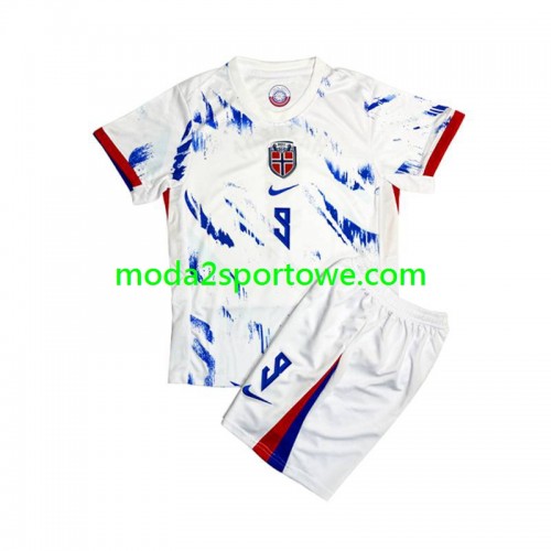 Koszulka Norwegia Erling Haaland 9 Dziecięcy Wyjazdowe Stroje Piłkarskie 2024 Krótki Rękaw