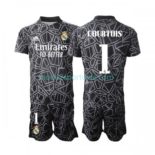 Koszulka Real Madryt Courtois 1 Bramkarska Dziecięcy Wyjazdowe Stroje Piłkarskie 2022/23 Krótki Rękaw