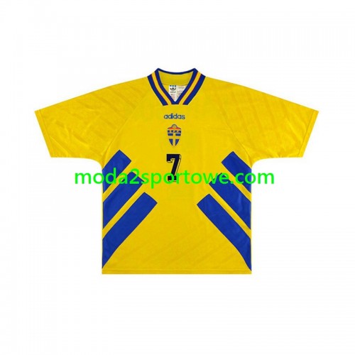 Koszulka Szwecja Henrik Larsson 7 Retro Domowe Stroje Piłkarskie 1994 Krótki Rękaw