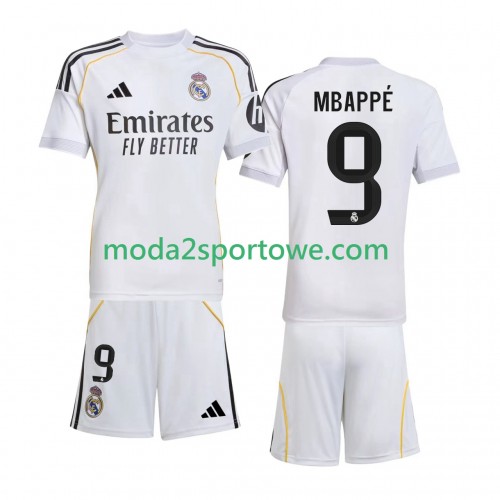 Koszulka Real Madryt Kylian Mbappé 9 Dziecięcy Domowe Stroje Piłkarskie 2025/26 Krótki Rękaw