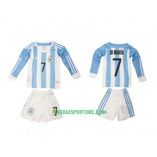 Koszulka Argentyna Angel Di Maria 7 Dziecięcy Domowe Stroje Piłkarskie 2016 Długi Rękaw