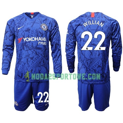 Koszulka Chelsea Willian 22 Dziecięcy Domowe Stroje Piłkarskie 2019/20 Długi Rękaw