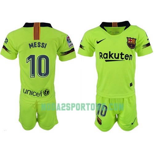 Koszulka FC Barcelona MESSI 10 Dziecięcy Wyjazdowe Stroje Piłkarskie 2018/19 Krótki Rękaw