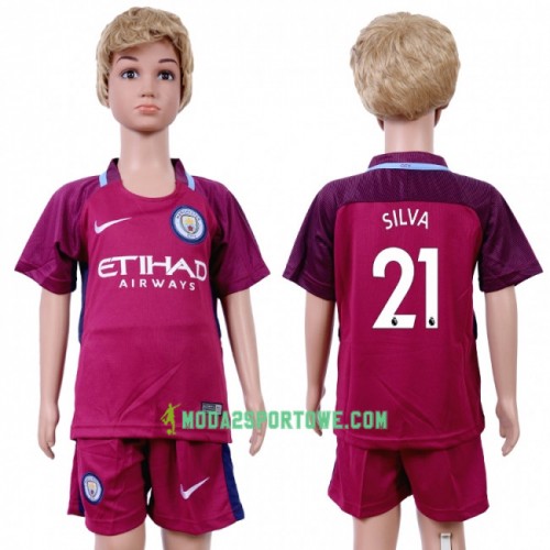 Koszulka Manchester City David Silva 21 Dziecięcy Wyjazdowe Stroje Piłkarskie 2017/18 Krótki Rękaw