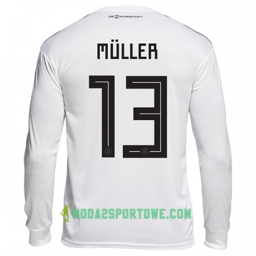 Koszulka Niemcy Muller 13 Mistrzostwa Świata 2018 Domowe Stroje Piłkarskie Długi Rękaw